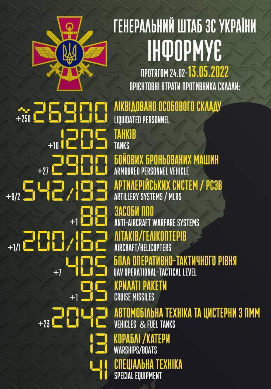 2022.05.24 - 90-а доба кривавої війни... 21 відсоток території країни поки-що залишається окупованим, але це ненадовго. Тривають жорстокі бої. Україна переможе!